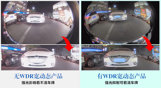 所謂WDR寬動態(tài)技術,本質(zhì)上其實是一種特殊的自動補光和縮光技術,它能夠讀取360全景攝像頭拍攝下來的視頻信息,找到視頻中最亮和最暗的部分,然后通過二次分析和處理,平衡畫面中各個區(qū)域的曝光度,能夠降低過亮的畫面,提升比較暗的畫面。